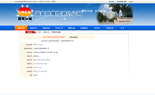 沈陽頒發的防爆合格證查詢網址:http://www.fbdqhy.com/hgz_search.aspx